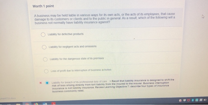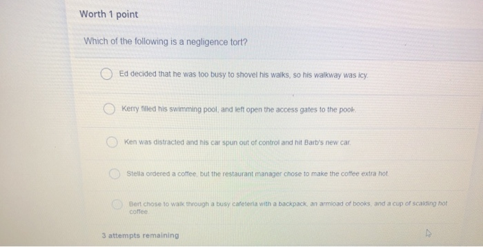 Worth 1 Point Which Of The Following Is A Negligence Chegg Com